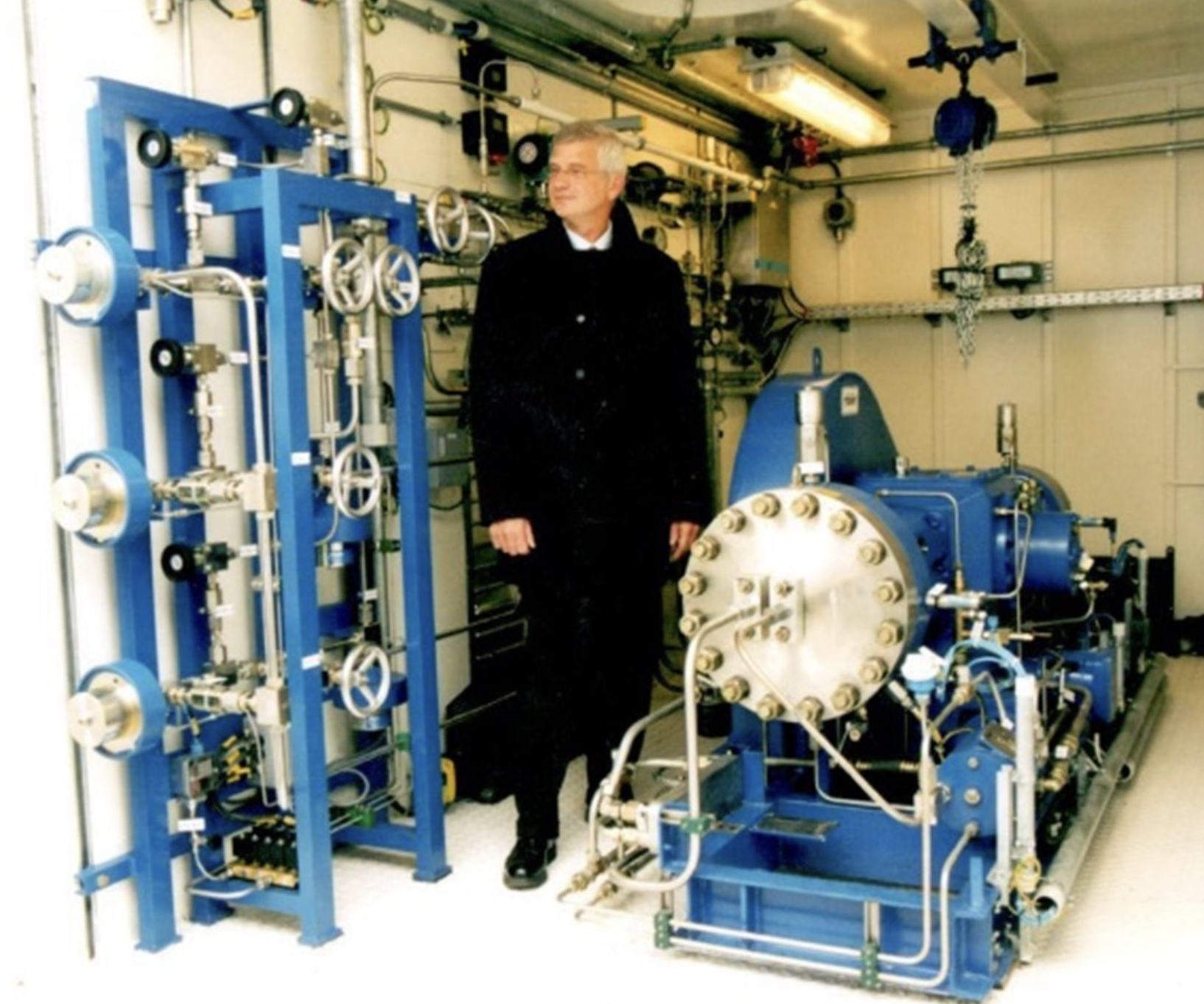 Founder and chairman, Per Agartson, with a hydrogen compressor in 1999.